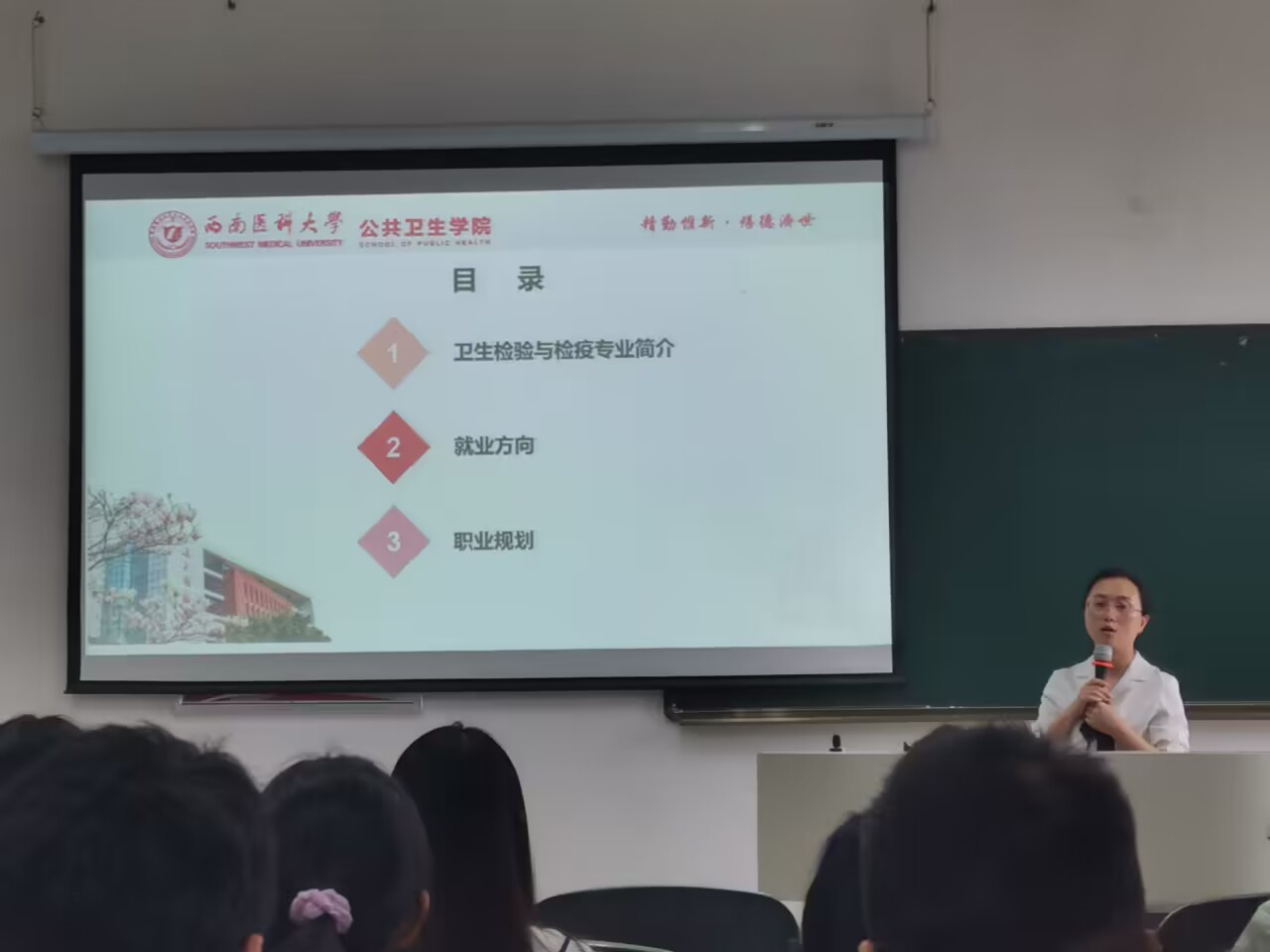 6月5日,华人策略社区官网网址卫生检验与检疫教研室主任大杨艳老师为22级卫生检验与检疫的同学讲授大学生职业生涯规划课,她分别从卫生检验与检疫专业简介、就业方向、职业规划三方面展开介绍,她提出在大学生在大学期间需要接受通识教育,更要学习一系列的专业教育与实践教育,本专业毕业生主要在各级疾病预防控制、环境卫生、海关检验、医院等机构从事公共场所、环境、传染病的卫生监测、预防与监督管理工作,因此大家一定要重视在学校里的学习,合理安排自己的大学时间,在专业实践方面多练习,有了扎实的基础才可以更好的胜任未来的工作。