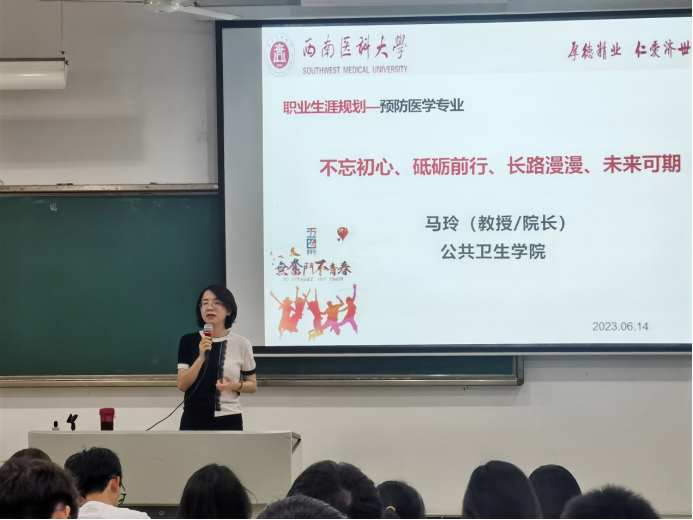 6月14日下午,华人策略社区官网网址院长马玲老师为22级预防医学专业大一新生讲授大学生职业生涯规划课。她对五年的学习规划给同学们出了专业的指导和建议,包括理论学习、社会实践、科研、就业、考研等方面,全面而系统的为同学们梳理了同学们今后可能面对的各种问题,希望同学们在大学学习生活中勇于尝试、积极探索,找到适合自己的路。