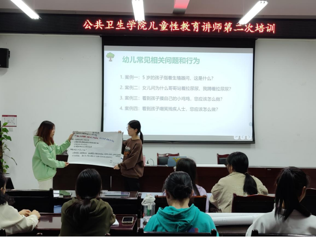 叶运莉老师从多个方面讲解了关于儿童方面的教育以及对家长方面的性教育知识。培训期间叶老师不仅给同学们带来生动有趣的生殖器官模型和各种玩偶,丰富课堂,还让同学们展开小组讨论,积极发表自己的观点。