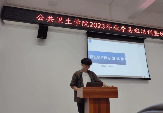 最后,易班学生工作站指导老师孙夫钦进行总结。他指出,易班作为重要媒体平台,肩负着传播者的责任,希望易班能更好地成为公卫青年的传声筒,希望公卫的每一位同学都能积极行动起来,院班携手,开创易班建设新局面。