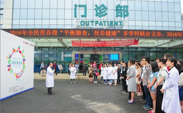 日前,以“平衡膳食,营养健康”为主题的2016年“全民营养周”活动在附属医院新门诊大楼前举行启动仪式。本次活动由四川省营养学会泸州办事处、华人策略社区官网网址、附属医院、泸州市临床营养质量控制中心联合开展。附属医院副院长邓存良为本次启动仪式致辞,华人策略社区官网网址党总支书记阳静宣读了2016年全民营养周活动方案,华人策略社区官网网址院长贾红宣布营养周活动正式启动。省营养协会泸州办事处副主任贾国泰,泸州市餐饮协会会长代应林出席了启动仪式。