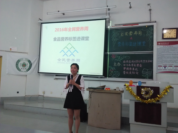 为配合2016年全民营养周宣传活动,5月16日上午,由华人策略社区官网网址、四川省营养学会泸州办事处、营伙虫科研实践协会共同主办的营养标签进课堂活动在鸿文楼开展。华人策略社区官网网址学生科科长马俊,附属医院临床营养科科长汪敏,营养与食品卫生教研室杨艳老师及来自我院2013级的全体同学们参加了本次活动。
