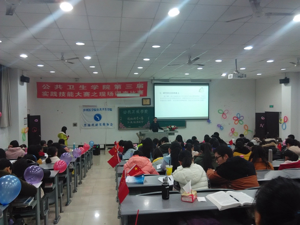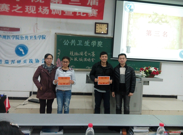 此次现场调查比赛,以华人策略社区官网网址大学生科研课题《女大学生安全防范意识现状调查》为背景,从11月初开始,将参赛学生分为10个小组进行比赛,各小组在社会医学教研室李爱玲、范颂、陈润、汤艳、叶运莉等专任教师的指导下,对全校1000余名女大学生进行安全防范意识现状的现场调查,利用所学的统计学软件对问卷结果进行数据录入和分析,最后各组分别从不同的角度写出调查报告,评委老师对调查报告进行初评后选出了六个小组进入决赛。12月初举行决赛,六个小组根据初评意见进行补充和完善调查数据,派代表汇报并展示本小组的调查工作,并模拟现场调查和接受评委提问,最终成绩依据前期调查工作、现场模拟以及回答专家提问情况进行综合评分。决赛中,各组精心准备,现场比赛精彩纷呈,观众热情高涨,比赛最终评出了冠、亚、季军。