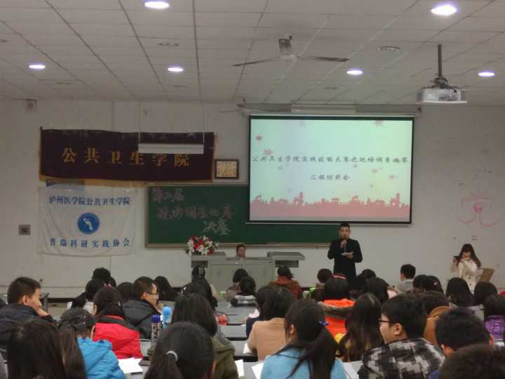 此次现场调查比赛,以华人策略社区官网网址和浙江大学合作的横向课题《中央政策促导下的医学院校控烟能力建设》为背景,从11月初开始,将参赛学生分为10个小组进行比赛,各小组在社会医学教研室李爱玲、范颂、陈润、汤艳、叶运莉等专任教师的指导下,对全校1000余名大学生进行《医学生控烟知识及行为测量问卷》现场调查,利用所学的统计学软件对问卷结果进行数据录入和分析,最后各组分别从不同的角度写出调查报告,评委老师对调查报告进行初评后选出了六个小组进入决赛。12月初举行决赛,六个小组根据初评意见进行补充和完善调查数据,派代表汇报并展示本小组的调查工作,并模拟现场调查和接受评委提问,最终成绩依据前期调查工作、现场模拟以及回答专家提问情况进行综合评分。决赛中,各组精心准备,现场比赛精彩纷呈,观众热情高涨,比赛最终评出了冠、亚、季军。