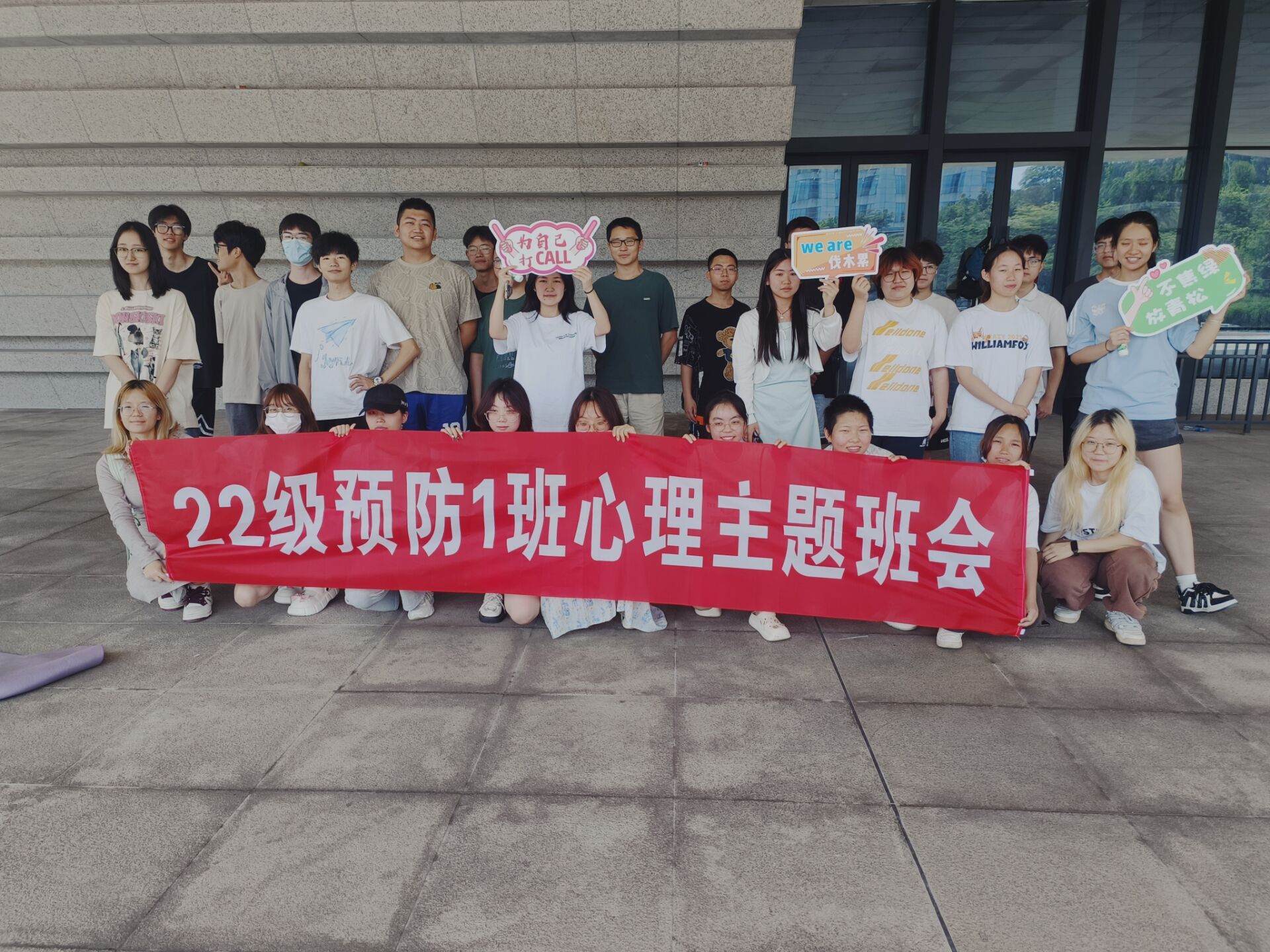 为响应“5·25”心理健康节活动,引导学生正确认识心理健康,掌握调节心理的方式方法, 学会维护身心健康,我院2022级预防医学1班于4月28日上午在青年广场举办了“强身润心,启智赋能”心理主题班会。