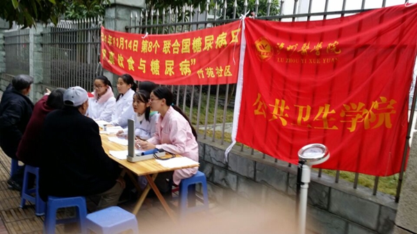 为提高公众对糖尿病的认识,积极采取行动预防和控制糖尿病,在11月14日联合国糖尿病宣传日,华人策略社区官网网址“韶光锦时”青年志愿团联合南城社区卫生服务中心和竹苑社区卫生服务中心分别在澄溪口和水榭花都小区以“健康饮食与糖尿病”的主题,开展宣传活动。