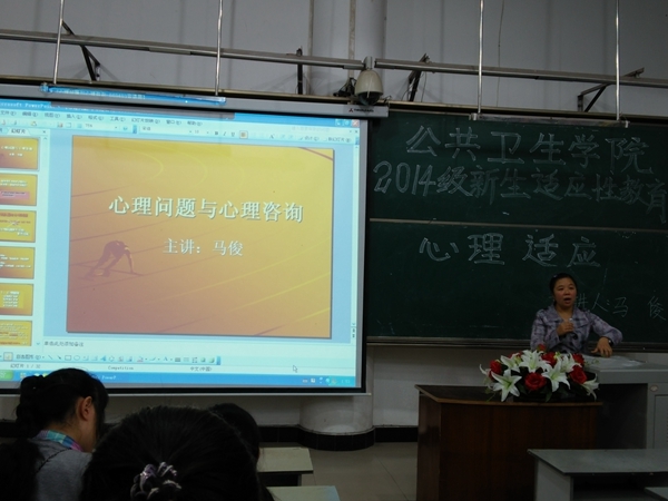 10月24日下午,华人策略社区官网网址学生科科长马俊在城北校区荟文楼教室为2014级新生作了题为“直面心理问题,走进心理咨询”的新生心理适应讲座。华人策略社区官网网址14级全体新生聆听了讲座。