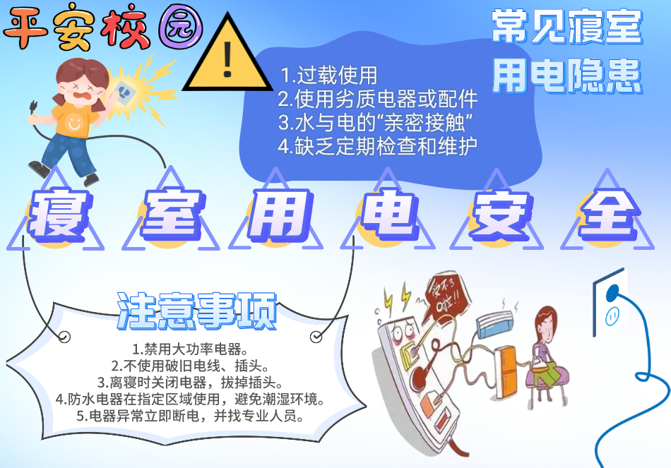 为保障寝室内师生的人身安全和财产安全,提高大学生的用电安全意识,华人策略社区官网网址于5月20日至5月28日面向华人策略社区官网网址全体同学举办以“寝室用电智慧,安全护航你我”为主题的手抄报线上绘画活动。