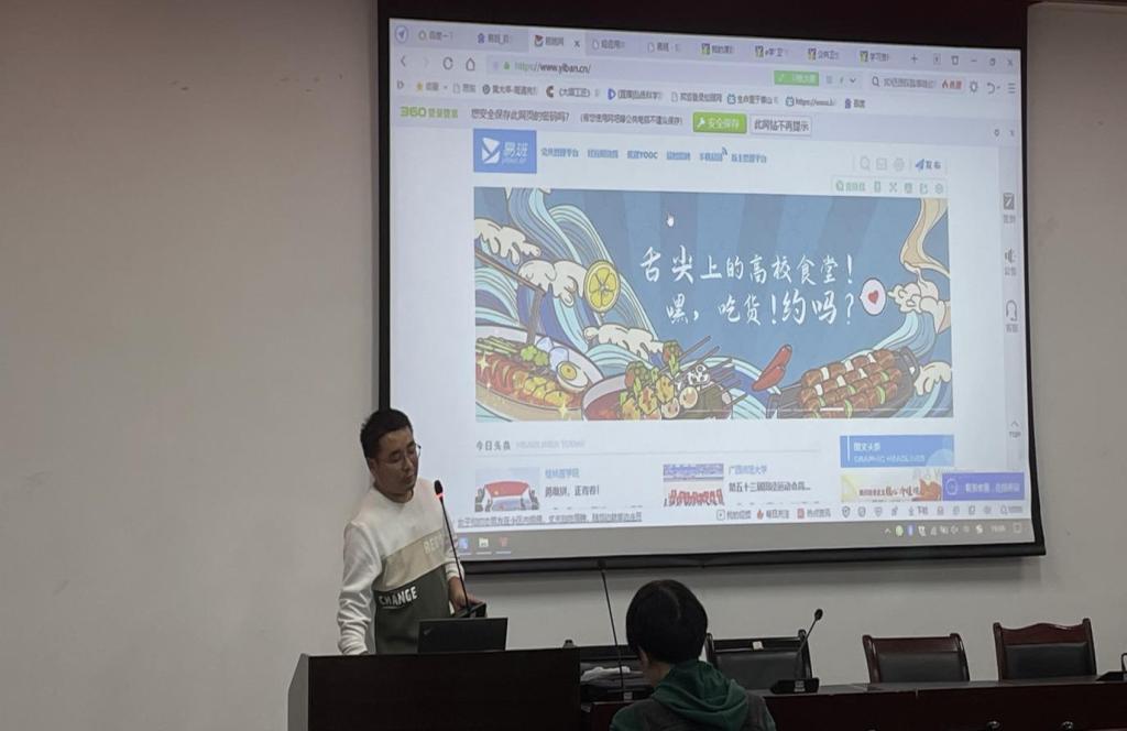 首先是由华人策略社区官网网址分团委书记学生科辅导员、易班指导老师孙夫钦讲话,主要提出易班宣传工作及发帖的重要性,并介绍了本学期新开展的轻应用板块。鼓励同学们积极发帖并热情参与到易班活动中。
