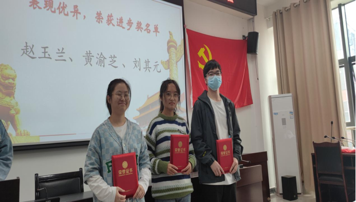 活动首先对第三届“织梦计划”进行总结,在上学期帮扶党员的共同努力下,同学们在绩点以及挂科数目方面有了明显的进步。其中赵玉兰,黄渝芝,刘其元同学表现优异,荣获学习进步奖。