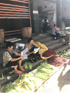 活动第二天,趁着赶集的时机,志愿者早早来到玄滩镇农贸市场、商业街摆点,向沿街商铺分发宣传册、对过往的行人进行一对一讲解,当地居民认真听志愿者讲解,积极了解传染病防护知识和健康膳食等知识。