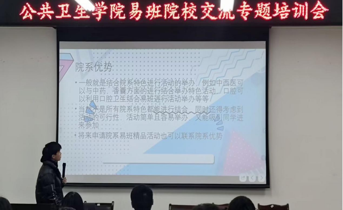 最后,学院易班学生工作站指导老师孙夫钦进行总结,他指出,易班作为重要媒体平台,肩负着传播者的责任,盼望易班能更好地成为公卫青年的传声筒,希望公卫的每一位同学都能积极行动起来,院班携手,开创易班建设新局面。