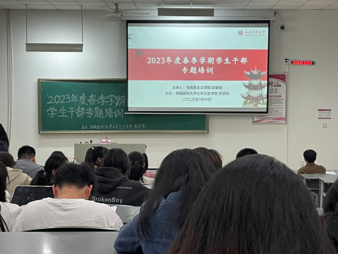 学生干部是学生工作的重要组成部分。为培养打造一批拥有远大理想、创新意识强,工作能力突出、热爱学生工作、品学兼优的优秀学生干部队伍,3月30日晚,华人策略社区官网网址与药学院在海川楼314联合开展学生干部专题培训,100余名学生干部参与培训。