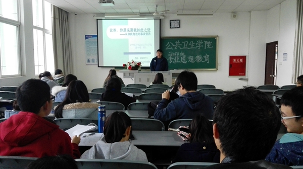 11月21日下午,华人策略社区官网网址黄小明博士为食品卫生与营养学专业2014级新生进行专业思想教育第五讲。