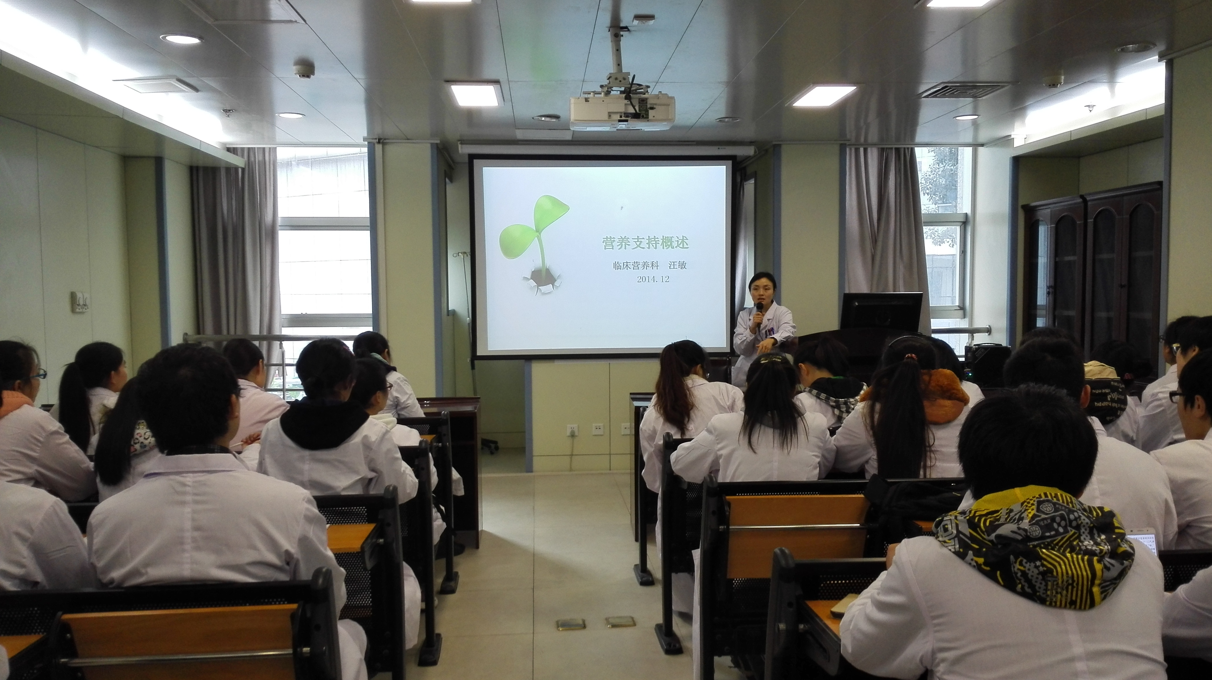 本次参观活动得到附属医院临床营养科以及相关临床科室的大力支持,营养科副主任汪敏首先为新生们做了《营养支持概述》的简短讲解,她从“营养治疗”,“糖尿病医学营养治疗”,“如何正确逛超市”这三个方面讲解了临床营养科所从事的工作和应有的知识储备,并从营养学方面结合现实教大家如何在超市选取有利于自己健康的食品。随后,在两位营养科医师的带领下同学们分别对两名高血压病人和糖尿病病人进行饮食问询和现场膳食指导的见习。