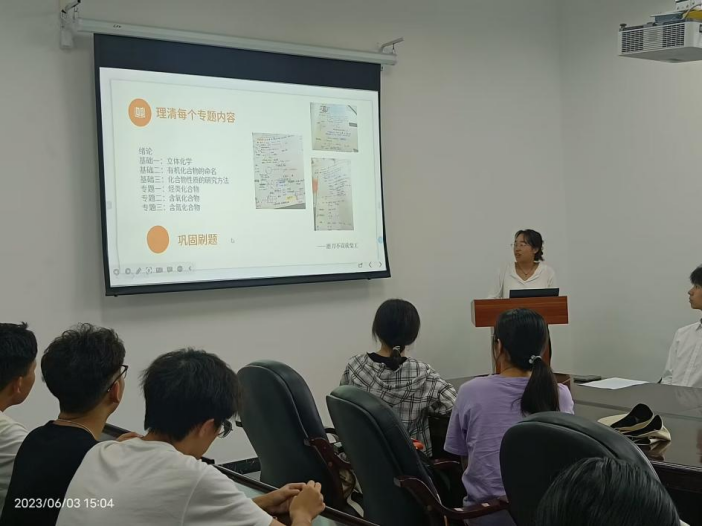 首先,2021级预防医学专业的夫春雪学姐就《有机化学》和《系统解剖学》两门学科进行详细的备考分享。重点阐述这了两门学科的类比学习方法,理清每个专题内容再巩固刷题的学习技巧。更要提前一个月做好复习计划,明确背诵类和理解类学科后分侧重点复习。