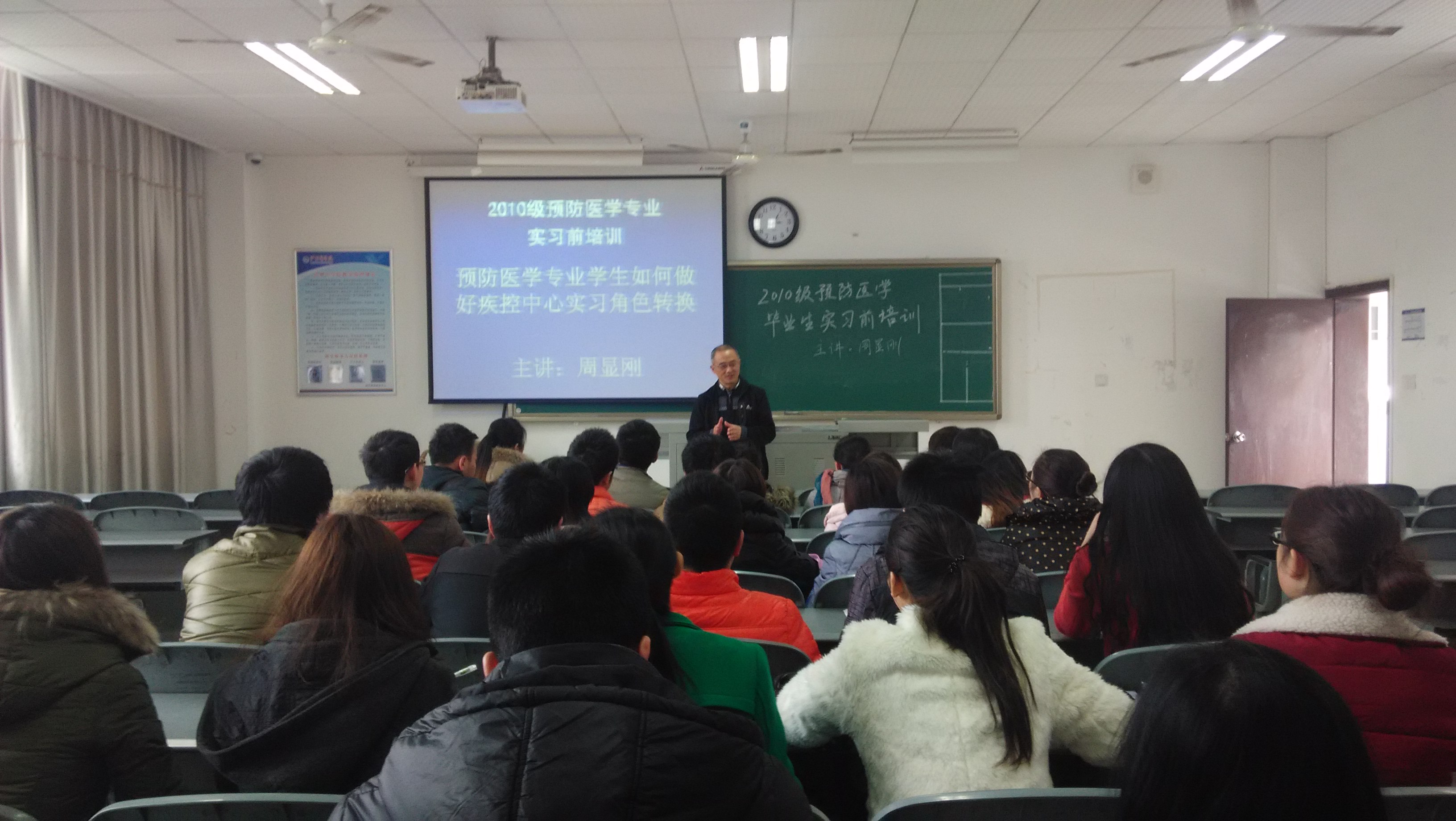 为了更好地帮助即将进入疾控中心实习的预防医学专业学生更快地融入实习生活,及时了解专业实习要求,华人策略社区官网网址于12月25日下午在海川楼召集2010级预防医学专业学生进行首次实习前培训,此次培训的主题为“预防医学学生如何做好疾控中心实习角色转换”,邀请到泸州市疾控中心周显刚教授主讲。