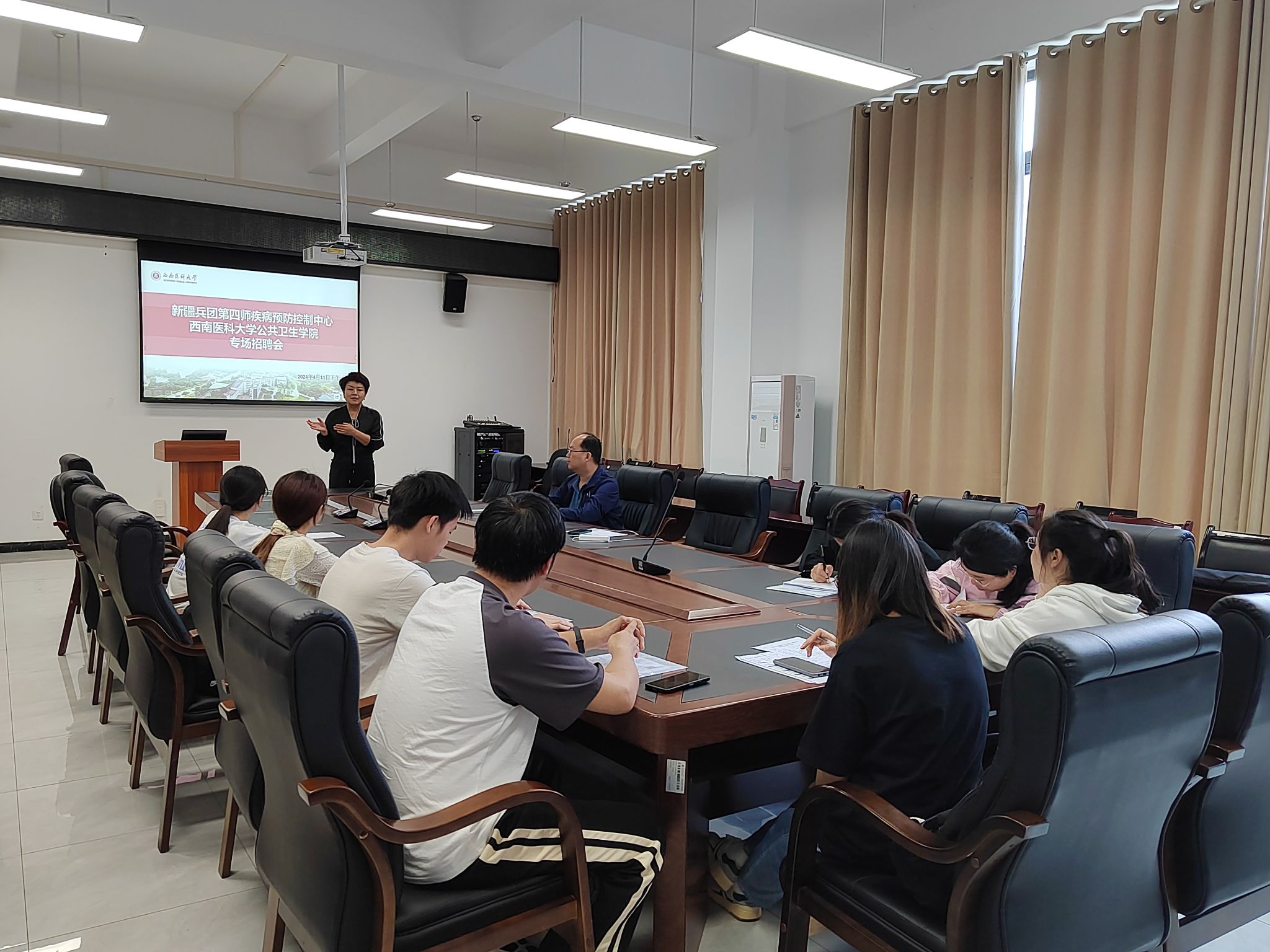 招聘会上,新疆第四师疾病预防控制中心的代表向毕业生们详细介绍了单位的基本情况、发展历程以及未来的发展方向。介绍完毕后,同学们积极提问,与新疆第四师疾病预防控制中心的代表进行了深入的互动交流。同学们纷纷表示,通过此次宣讲会,他们对新疆疾病预防控制工作有了更加全面、深入的了解,也对自己的未来职业规划有了更加明确的方向。