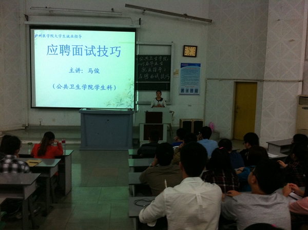 继华人策略社区官网网址“北极星计划”就业指导工作启动后,10月21日晚,华人策略社区官网网址在城北校区鸿文楼举办了应聘面试技巧专题讲座。讲座由华人策略社区官网网址学生科科长马俊主讲,2010级预防医学全体毕业生聆听了讲座。