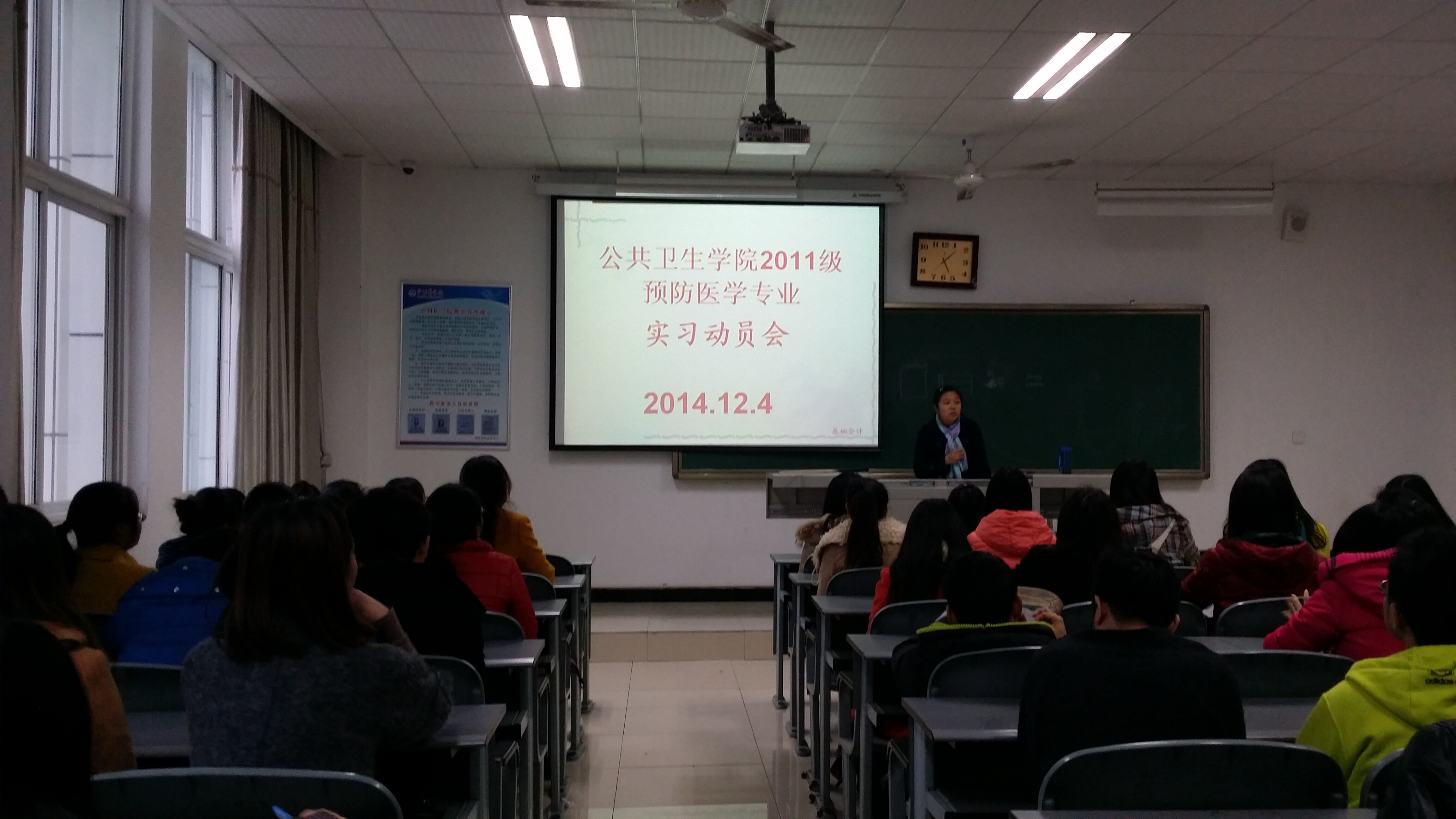 为配合学校做好15年1月下基地实习工作,2014年12月4日下午,华人策略社区官网网址学生科组织预防医学专业2011级60余名即将开始临床实习和专业实习的学生召开第一次实习动员会。