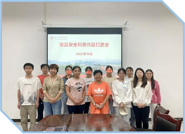 学院任课教师度重视此次活动,2022年10月1日以腾讯会议形式开展作品创作动员会和科普作品经验分享,2022年10月21日在仁济楼320会议室师生共同观看学生作品、提出修改意见,初筛科普作品。2022年10月28日在仁济楼营养教研室任课教师继续对修改后的推荐作品作进一步打磨,提出修改意见,并推选《提高免疫,轻松战“疫”》、《冰箱不是保险箱》等五个作品参赛。