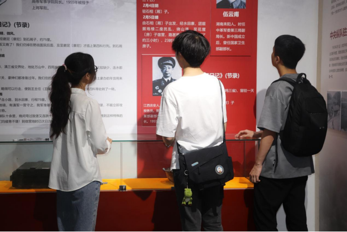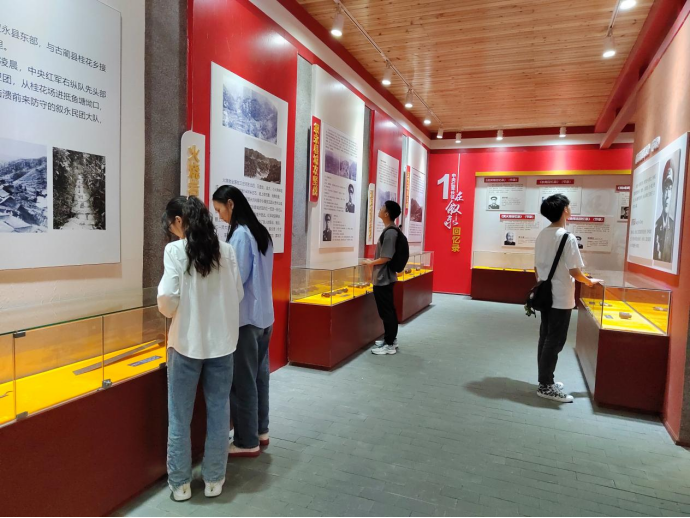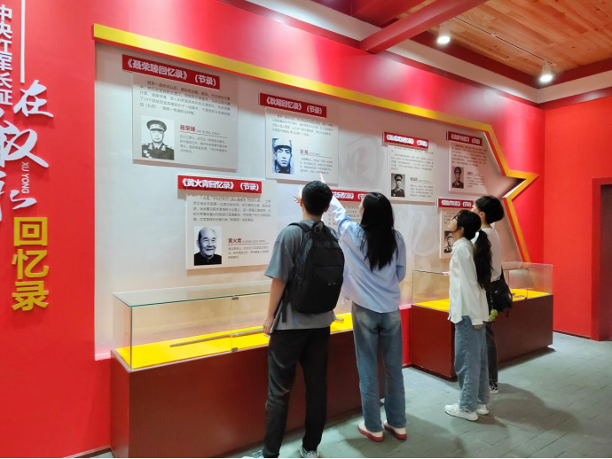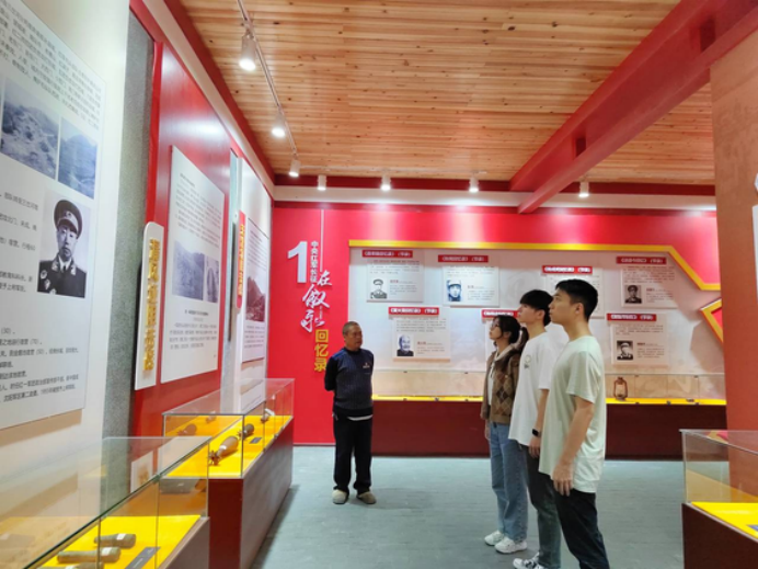 调研小组一行在讲解员老党员叶顶文老师的带领下,从“红军进驻石厢子”、“打土豪过开心年”、“鸡鸣三省石厢子会议”、“川南游击纵队”、“烈士英雄录”五个部分为大家介绍了中央红军在叙永石厢子的两天两夜。同学们依次参观了三个展厅。叶老师告诉我们,“鸡鸣三省”会议是遵义会议的延续和补充,是党和红军历史上又一次承前启后、继往开来的会议,它进一步巩固了毛泽东在党和红军中的领导地位,维护和增强了全党的统一和红军的团结。叶老师勉励同学们,希望大家不要忘记党,要珍惜现在的幸福时光,多向老一辈学习,肩负起建设祖国的重担,继续走好新的长征路。