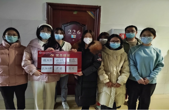 座谈会后,彭丽冰老师和孙夫钦老师来到学生公寓,为新发展党员宿舍挂上“共产党员寝室”的门牌。这是一块象征党员身份的牌子,更是一份荣誉和责任,激励每一位学生党员按照合格大学生党员的标准要求自己,“从我做起、向我看齐、对我监督”,全面提升自身综合能力,发挥党员的模范带头作用。