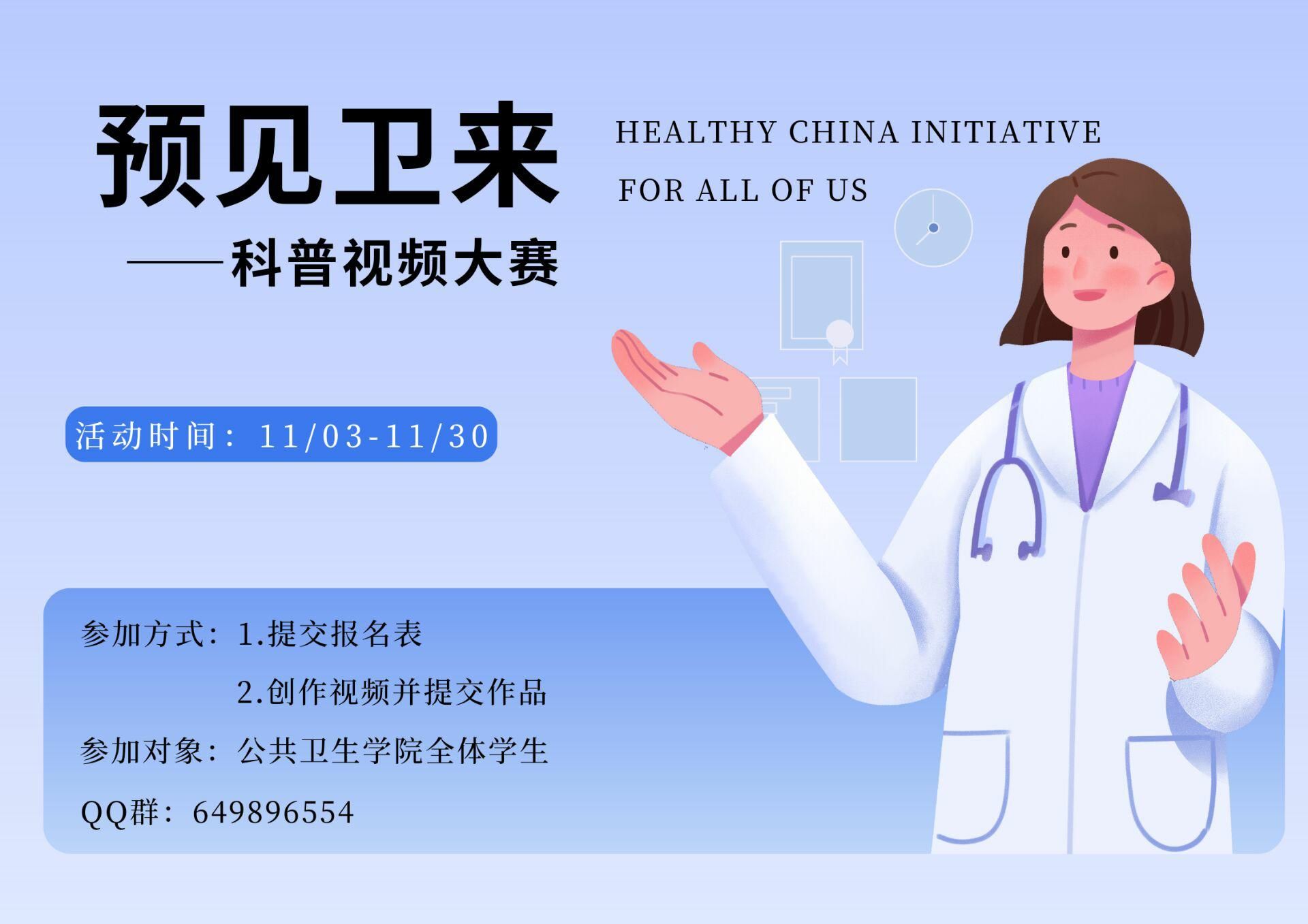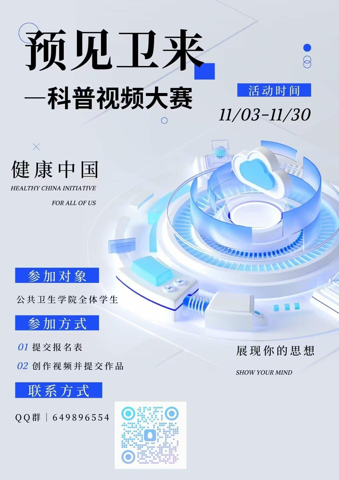 为贯彻落实中共中央、国务院《“健康中国2030”规划纲要》,响应建设健康中国的号召,引领青年学生投身健康中国行动,普及健康知识,提高卫生健康领域防控风险能力,呼吁全社会增强健康意识,大力宣传生命健康的重要意义,推动卫生健康事业高质量发展,加快形成健康中国建设人人参与、人人共享的社会环境氛围,华人策略社区官网网址于11月3日起在线上举办了“预”见“卫”来·科普视频大赛