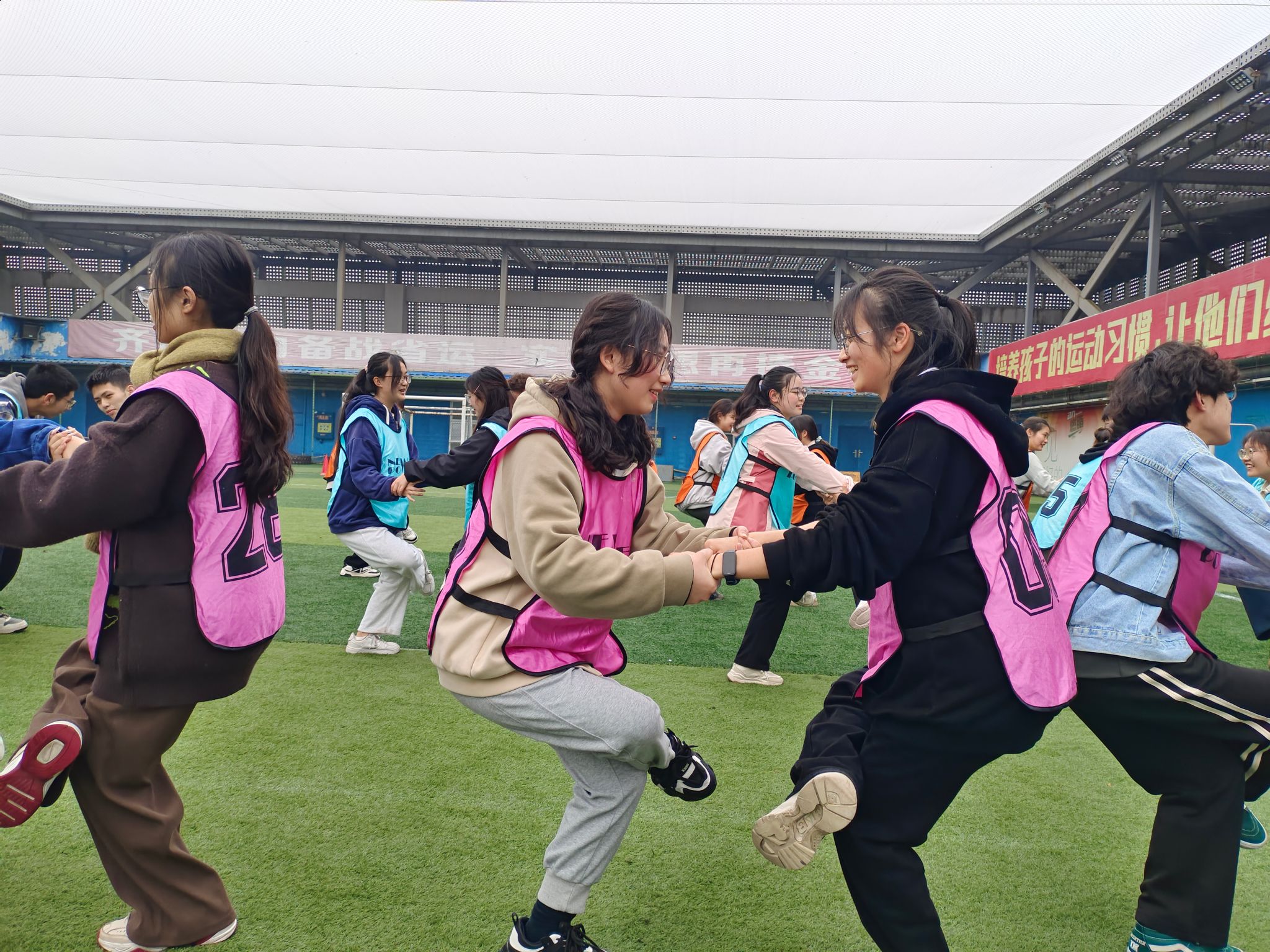 活动在华人策略社区官网网址党委副书记金川老师热情洋溢的开场致辞中徐徐展开。持人的带领下,同学们进行了一系列的热身活动并且分为了“粉”“蓝”“黄”“紫”四个队伍,此时会场的气氛已经逐步活跃起来。