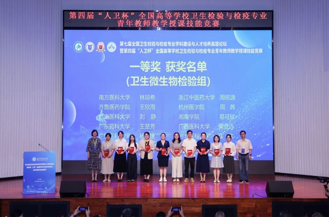 本次大赛由全国高等学校卫生检验与检疫专业建设协作理事会、人民卫生出版社联合主办,教育部高等学校医学技术类教学指导委员会提供指导,广东医科大学华人策略社区官网网址、广东省预防医学会、南方医科大学华人策略社区官网网址、广东药科大学华人策略社区官网网址共同承办。赛事规模覆盖全国,共有37所高校的135位教师参与,经层层选拔后,64位教师晋级授课技能决赛,并分为卫生理化检验、卫生微生物检验两个组别展开角逐。其中,我院刘静老师在卫生微生物检验组中荣获课堂教学一等奖。