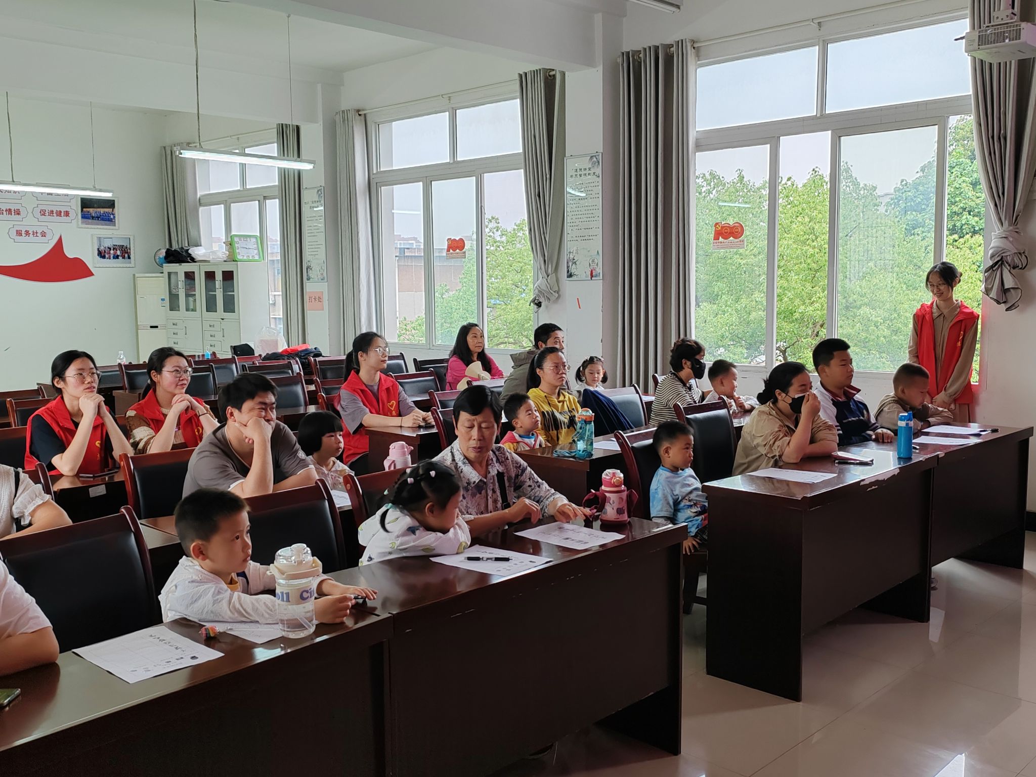 随后,为加深与小朋友之间的交流,更好地与小朋友们进行“心灵”间的谈话,“益生菌”志愿者带领小朋友们体验“抱团游戏之一元五角”游戏,快速拉近了志愿者们和小朋友之间的距离,也使得课堂的活跃氛围活跃了起来。