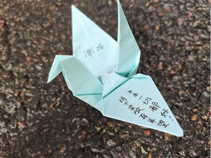 本次活动以线上与线下结合的方式开展。活动前期,团队在官方qq发文,开展宣传集赞活动吸引同学们参加,同学们纷纷转发,附上对艾滋病人的鼓励与祝福。活动当天,同学们在摆点现场领取纸张,折成千纸鹤并在其翅膀上写上对患者的美好祝愿交予工作人员。为鼓励同学们,团队还为每一个为艾滋病人送出关怀的同学准备了精美的小礼品。摆点人员引导同学们关心爱护艾滋病病人,倡导大家养成文明健康的生活方式,洁身自爱,多一份理解与关怀,少一份歧视与冷漠,同学们在这过程中收获颇多。