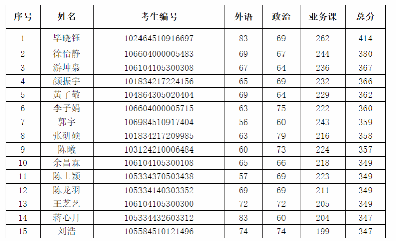 根据《我院2024年硕士研究生招生考试复试工作办法》的要求,因进入调剂复试名单的部分考生自愿放弃本次调剂复试资格,现将参加我院本次调剂复试的考生名单公布如下: