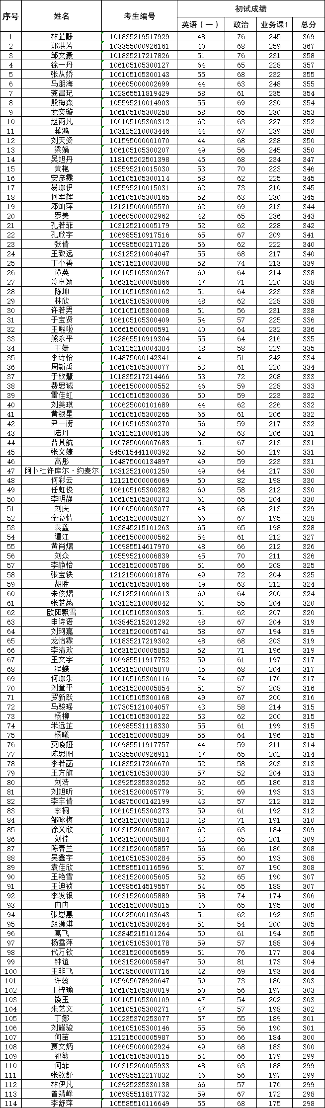 根据《我院2025年硕士研究生考试招生复试工作办法》,按照我院复试调剂细则及本专业调剂通知公告要求,现将进入我院公共卫生专业(105300)第一轮调剂复试的考生名单公布如下: