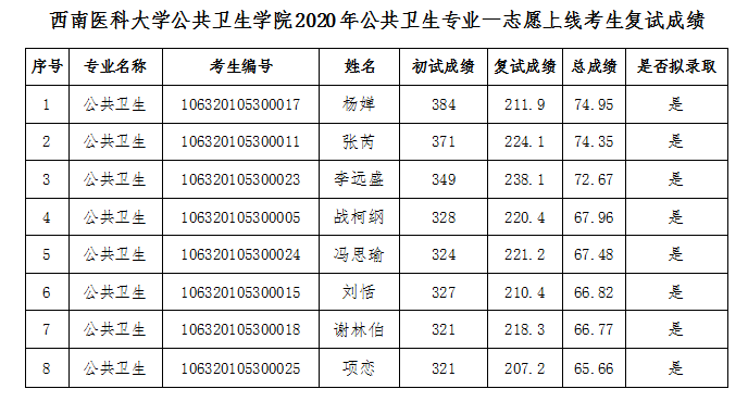 华人策略社区官网网址华人策略社区官网网址于2020年5月18日上午圆满完成2020年公共卫生专业一志愿上线考生复试工作。学院按照公平、公开、公正、规范等工作原则,德智体全面衡量、按需招生、择优选拔等录取原则,对考生的专业英语、专业知识、综合素质进行全面考核,总成绩按照满分100分折算后【考生总成绩=(考生初试成绩÷5)×70%+(考生复试成绩÷3)×30%】进行排序。现将一志愿上线考生复试成绩公示如下: