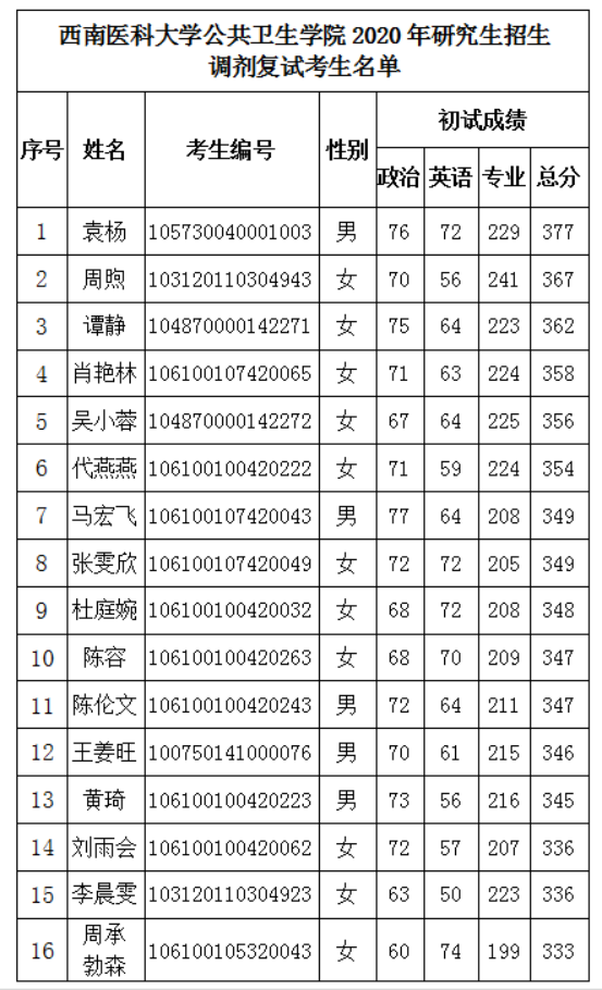 根据《华人策略社区官网网址2020年硕士研究生考试招生复试工作办法》的要求,并按照择优调剂的原则,结合我院实际情况,现将进入我院调剂复试的考生名单公布如下: