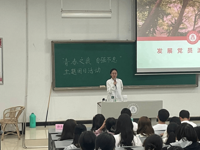 最后,前党小组秘书、预备党员兼2020级食品卫生与营养专业1班团支书兰元媛为新生团支部分享入党的相关内容,动员新生同学积极加入党组织,为中华民族伟大复兴贡献自己的青春力量