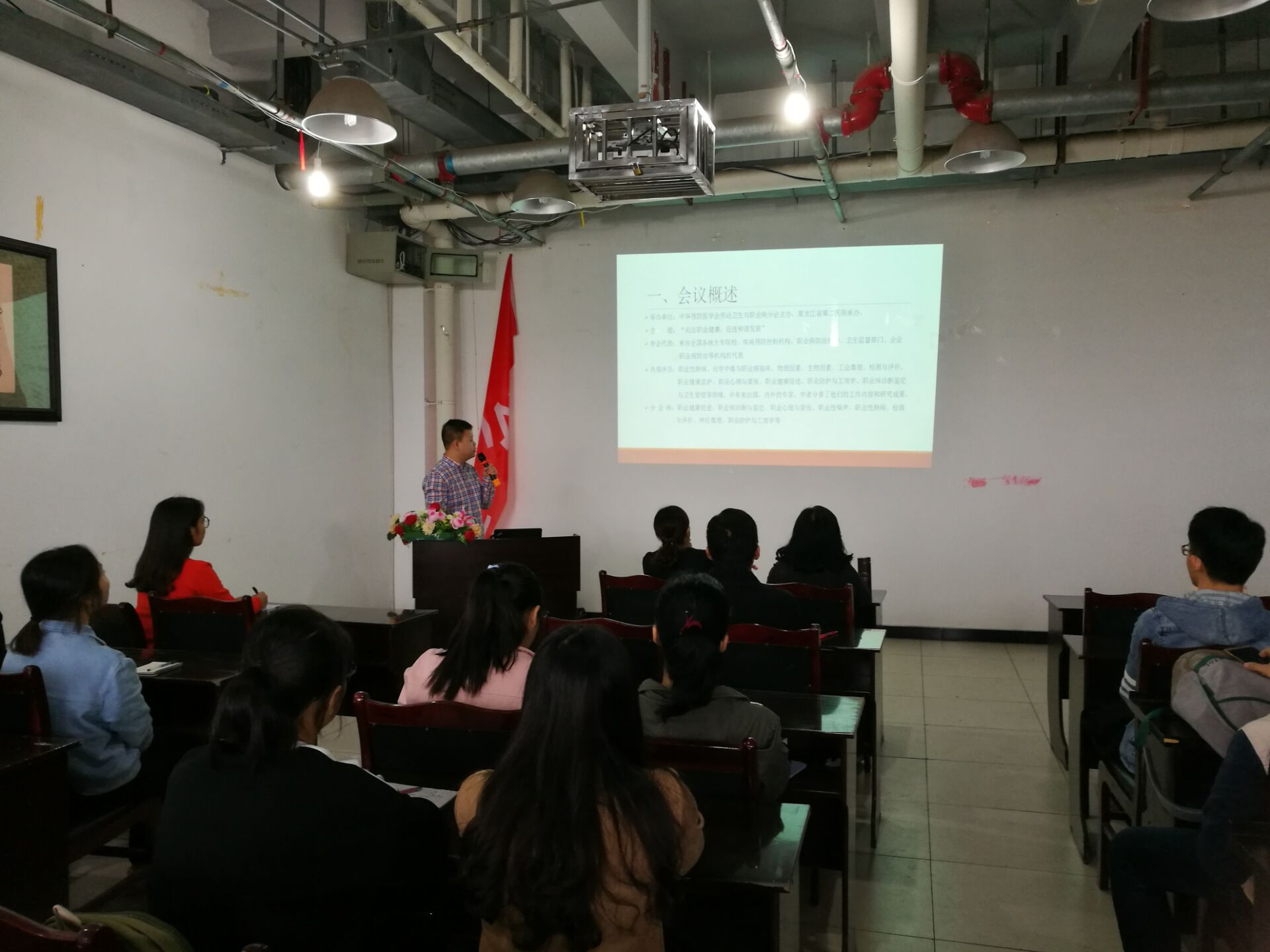 2016年10月11日中午,华人策略社区官网网址“公卫论坛”研究生第一讲在奥体中心三楼开讲。华人策略社区官网网址院长贾红、党总支副书记李星、研究生导师代表汤艳、博士代表李永儒、辅导员万华麒等老师以及华人策略社区官网网址全体研究生、部分本科生参与了本次论坛。2016级研究生刘憙润同学主持论坛.