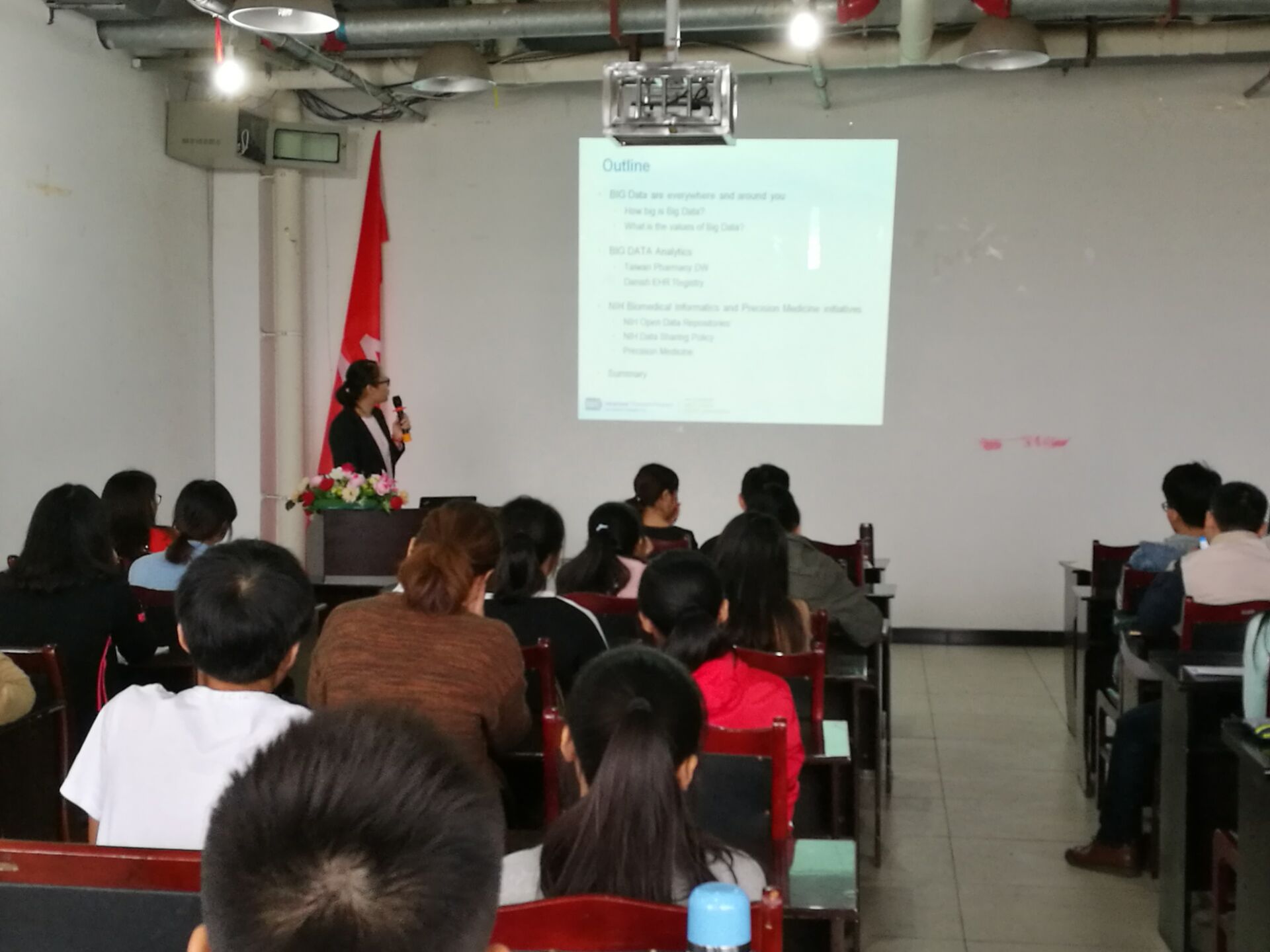 论坛上,2015级研究生李雄就他参加的第十四届全国劳动卫生与职业病学术会议的感受和获奖论文进行了分享,2015级研究生黄闪闪做了题为“From Big Data Analytics Research to Precision Medicine Initiative”的分享。
