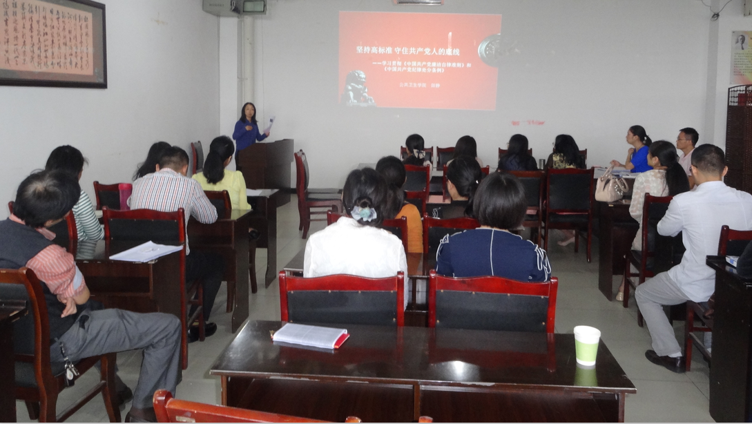阳静以《坚持高标准守住共产党人的底线》为题,紧扣“两学一做”学习主题,围绕严明党的政治纪律和政治规矩,增强“四个意识”,做“四讲四有”合格党员等方面,从为什么要重新修订《中国共产党廉洁自律准则》《中国共产党纪律处分条例》、《准则》和《条例》具体内容、如何贯彻好《准则》《条例》,做忠诚干净担当的共产党员等方面进行全面深入地阐述。