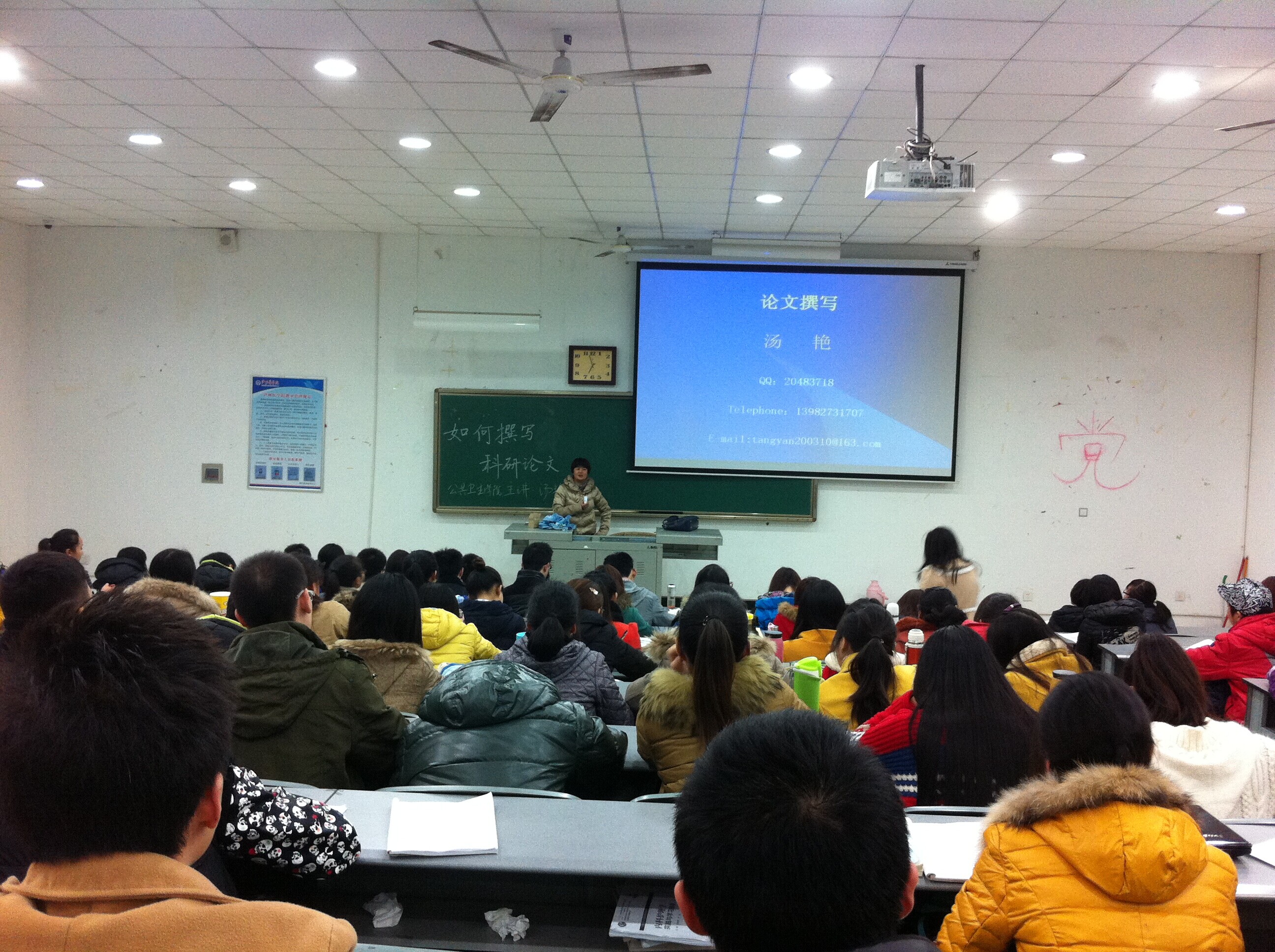 汤艳副教授围绕如何选取研究问题、如何开展选定问题的研究工作、论文的基本格式、论文的写作规范等方面展开讲解,并结合实例进行分析。完整系统地讲解了从论文的选题开始,到最后的排版等多方面的注意事项和要求以及程序。其中重点地说明了除选题和科研工作开展外,格式和写作规范是我们最容易忽略的问题,让大家清楚地认识到规范化的重要性以及科学研究的严谨。汤老师在整个讲座的过程中循循善诱,生动地通过自己的经验体会讲述了发表科研文章的整个过程,使大家受益良多。