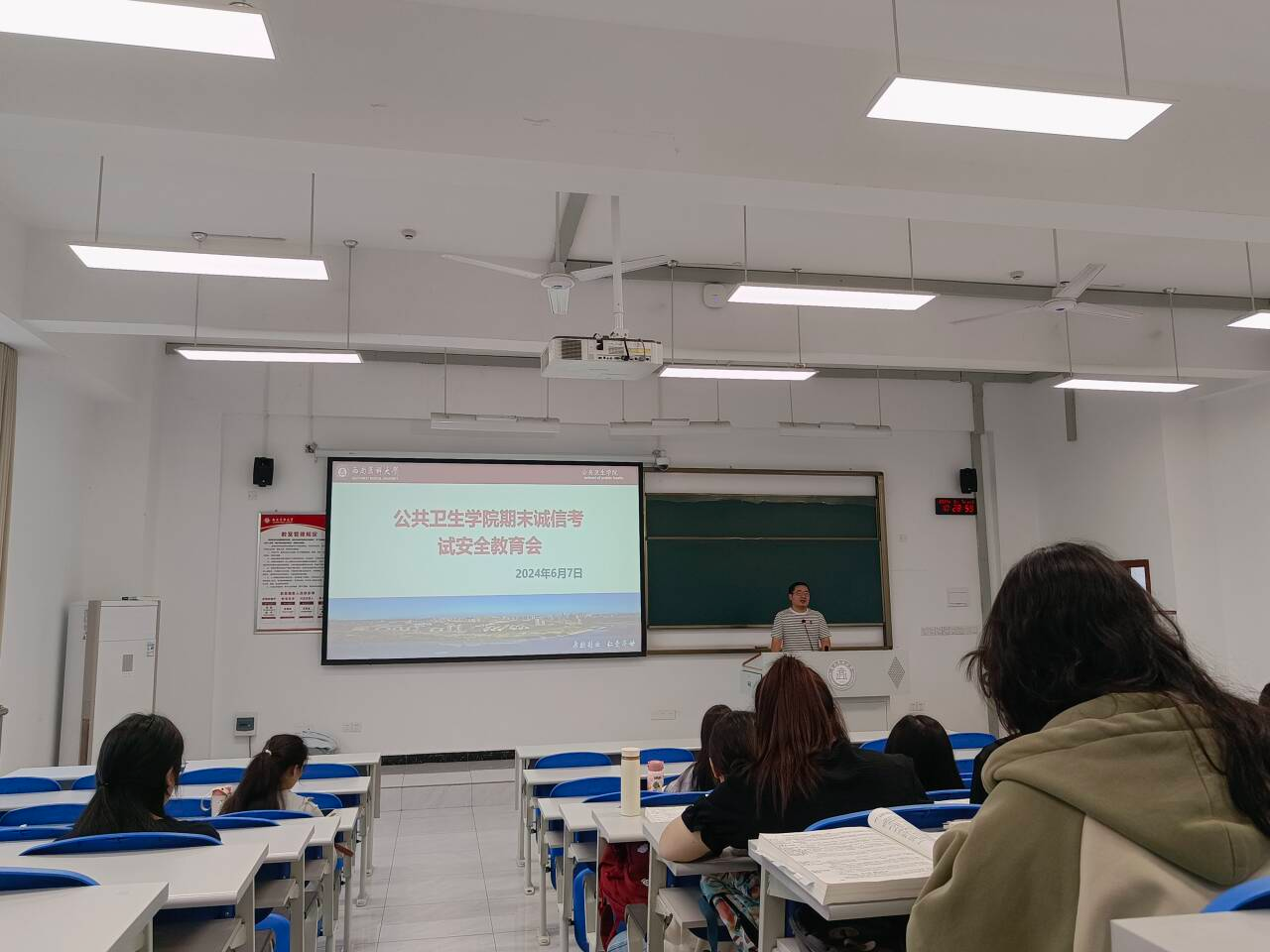 会上,孙夫钦、徐正兴分别向同学们强调了自觉严格遵守考场纪律,并在现场集中组织学习《期末考试考风考纪告知书》,把时间精力转移到期末复习上来,严禁触碰违纪、作弊的“高压线”,提高学生对严肃考风考纪重要性和考试作弊危害性的认识,同时,6月10-17日,每个年级的同学通过线上线下相结合的形式学习《期末考试考风考纪告知书》,并在确认书上签字确认;文明安全上网,依法上网,正确使用微博、微信、易班等新媒体工具,做守法、文明、负责任的新媒体时代公民;准确判断诈骗信息,以防上当受骗,提高电诈防范意识,警防手机短信诈骗、电信网络诈骗、非法校园贷、非法传销等骗局,并提醒学生安装“国家反诈中心”APP和关注“熊猫反诈”微信公众号,登录并开启来电和短信预警功能,熟悉国家反诈中心电话96110;严禁在学生寝室使用违规大功率电器,防火防盗,注意用电安全;注意校园交通安全,遵守交通安全规则,提醒学生天气越来越热,牢记防溺水“五不”,然后强调同学们要树立自己的目标,做好个人职业规划。