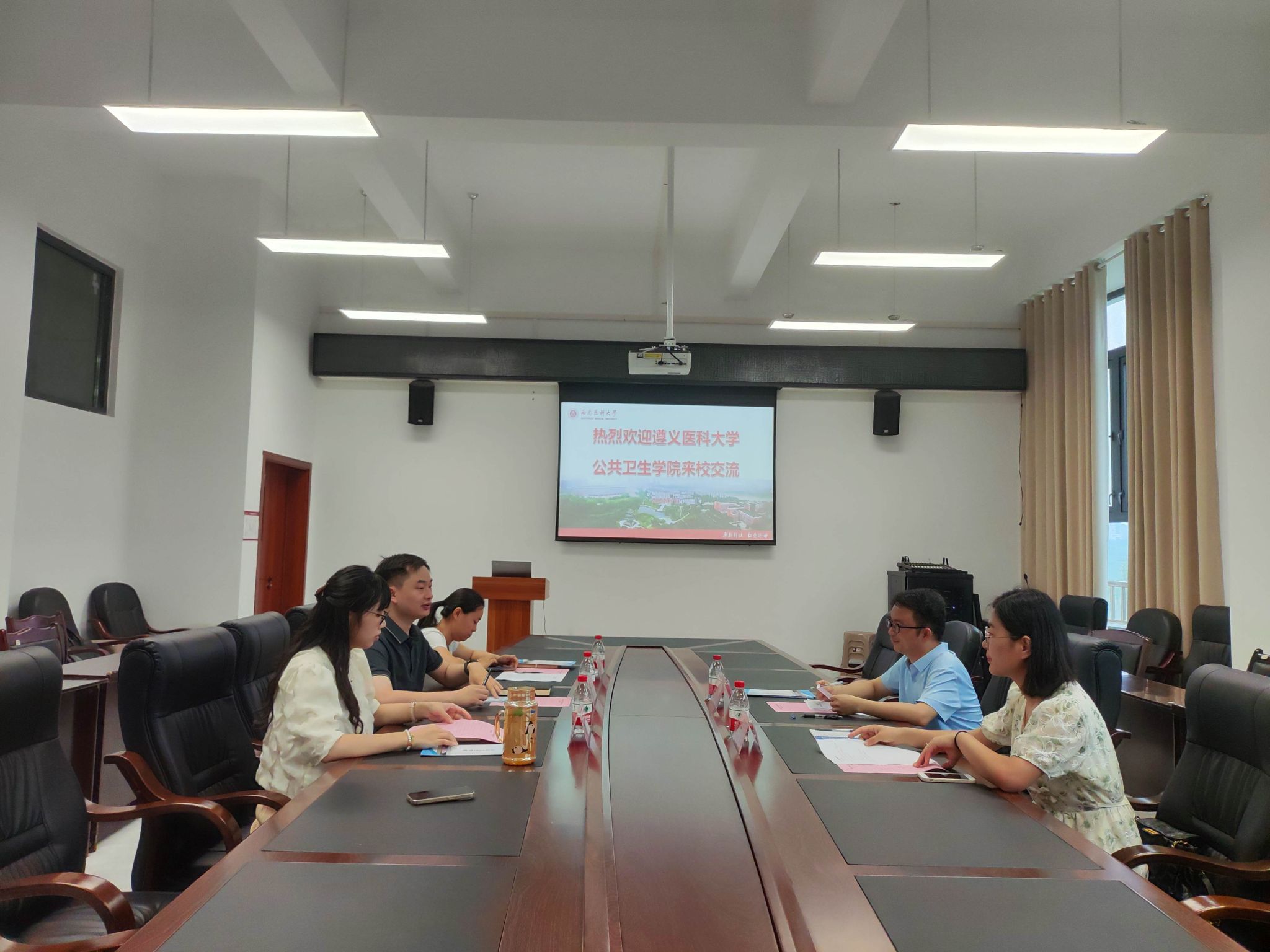 7月5日,遵义医科大学华人策略社区官网网址系主任、教研室主任石修权、硕士点学科秘书周彦娜一行2人来校交流访问。华人策略社区官网网址副院长范颂、学科建设办公室副主任伍虹飞、教务科科长万华麒参加了座谈会。