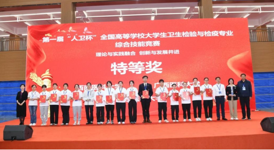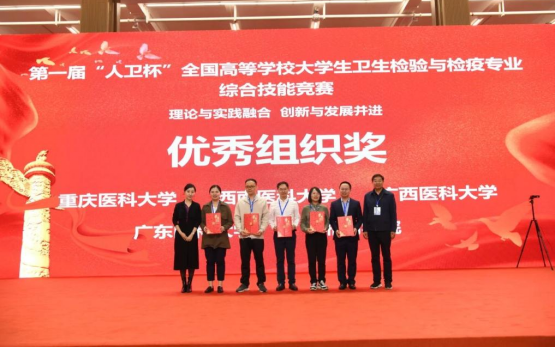 2024年10月12日,第一届“人卫杯”全国高等学校大学生卫生检验与检疫专业综合技能竞赛决赛在重庆医科大学盛大举行。本次大赛由全国高等学校卫生检验与检疫专业教育联盟、人民卫生出版社主办,重庆医科大学华人策略社区官网网址、河北医科大学华人策略社区官网网址、南京医科大学华人策略社区官网网址、南华大学华人策略社区官网网址、温州医科大学检验医学院(生命科学学院)、四川大学华西华人策略社区官网网址承办。我校华人策略社区官网网址卫生检验与检疫专业学生邵文艺、王子璇、沈明月、鞠洋和张夏组成的学生团队代表学校参赛并斩获特等奖,我校获优秀组织奖。