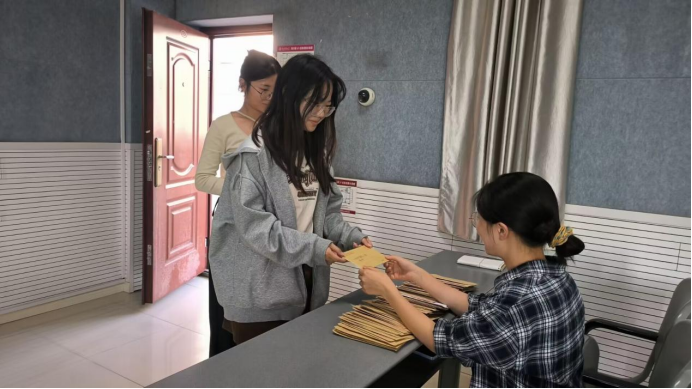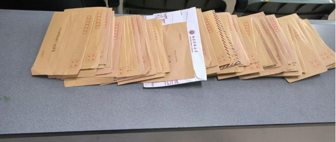 活动开始前,学生会组织部成员提前到达仁济楼320会议室,为收集信件做好准备。交信时,同学们脸上洋溢着对未来的期待。他们的书信中真挚地表达了对伟大祖国的祝福与期盼。有的同学将对未来的憧憬化为文字,寄希望于自身的成长与变化;有的则珍藏此刻的情感,期望将这段宝贵的过去寄往未来。