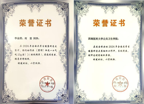 近日,中华预防医学会公布了2024年全国大学生健康科普大赛结果,华人策略社区官网网址推荐的卫生检验与检疫专业2021级学生李金玥、何苗的作品《震惊!他一口气吃15g盐!》(指导老师:杨艳)喜获短视频类优秀奖。同时,我院还荣获“优秀组织单位”称号。