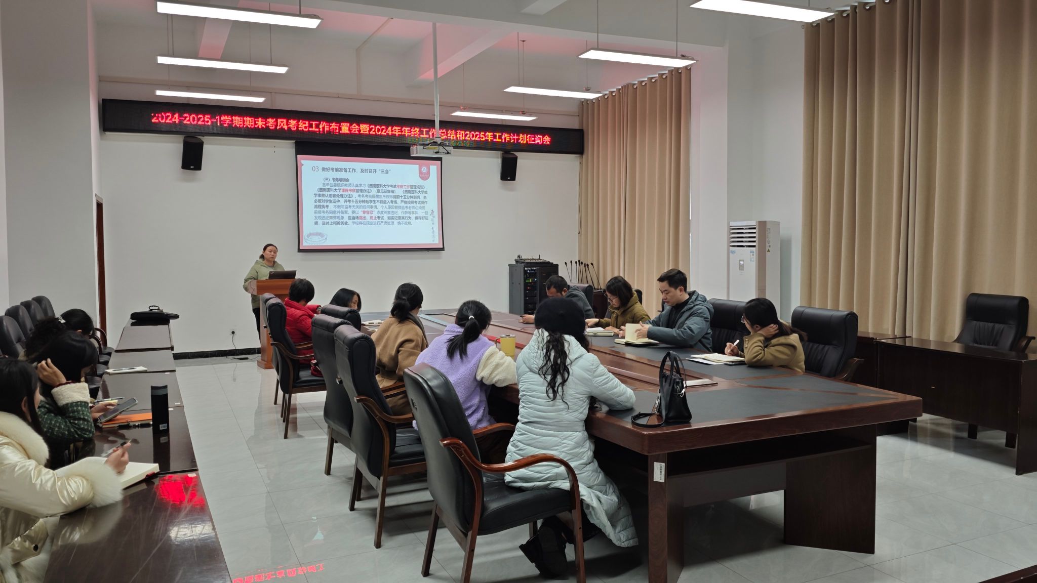 会上,教务科科长详细通报了期末考试的试题命制、监(巡)考安排、试卷评阅、成绩评定和试卷存档等工作。强调了试卷保密工作的重要性,同时要求各教研室精心组织,细化监考教师培训,确保监考教师能够严格履行职责,维护考场纪律。学生管理方面要求学生科开展全员警示教育,督促学生复习备考,增强诚信考试意识,做到考试前有准备、有教育、有承诺,考试中有监督、有管理、有服务,考试后有总结、有反馈、有奖惩,杜绝违纪行为的发生。