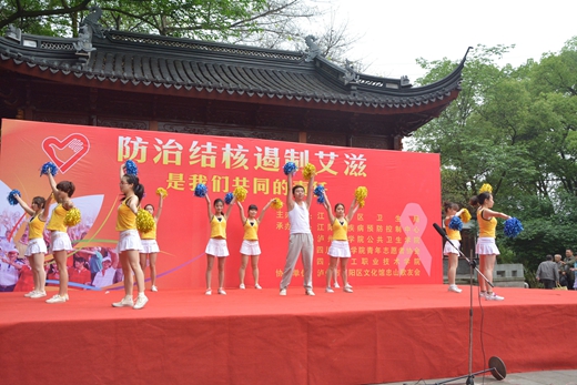 4月26日上午,由江阳区卫生局主办,江阳区疾病预防控制中心、泸州医学院华人策略社区官网网址、四川警察学院青年志愿者协会、四川化工职业技术学院承办,泸州市江阳区文化馆忠山歌友会协办的防治结核遏制艾滋为主题的宣传表演在泸州市忠山公园举行。