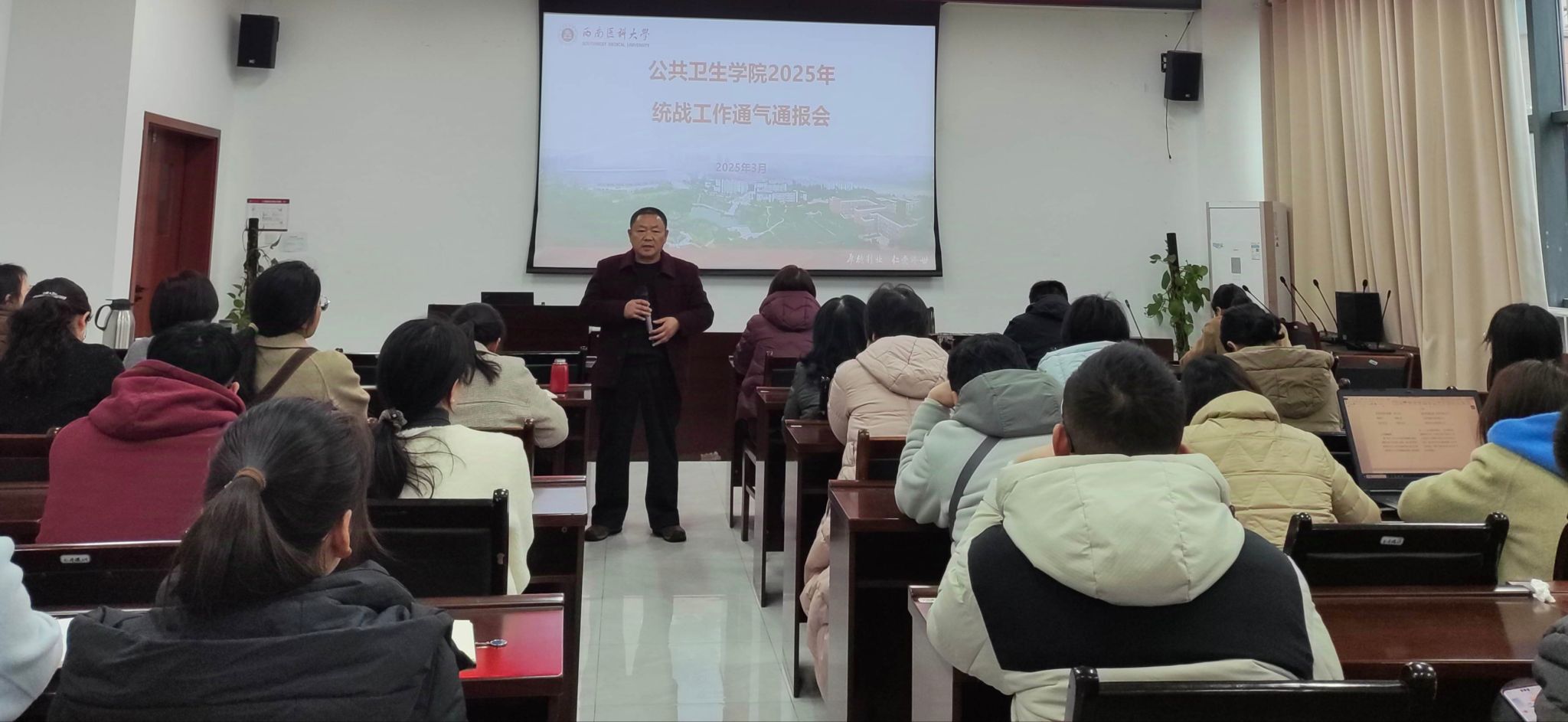 张依国带领与会人员专题学习党的二十大关于统战工作的战略部署,重点解读《中国共产党统一战线工作条例》核心要义。他强调,统战工作是凝聚人心、汇聚力量的政治工程,学院要构建“大统战”工作格局,把统战成员的思想引领与学院学科建设、社会服务紧密结合,打造具有公卫特色的统战工作品牌。