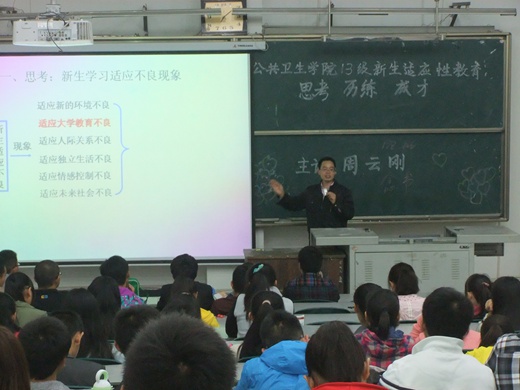 10月27日晚,应华人策略社区官网网址邀请,免疫学教研室周云刚老师在城北校区荟文楼为我院2013级全体新生作了题为“思考·历练·成才”的新生适应性教育之学习适应专题讲座。